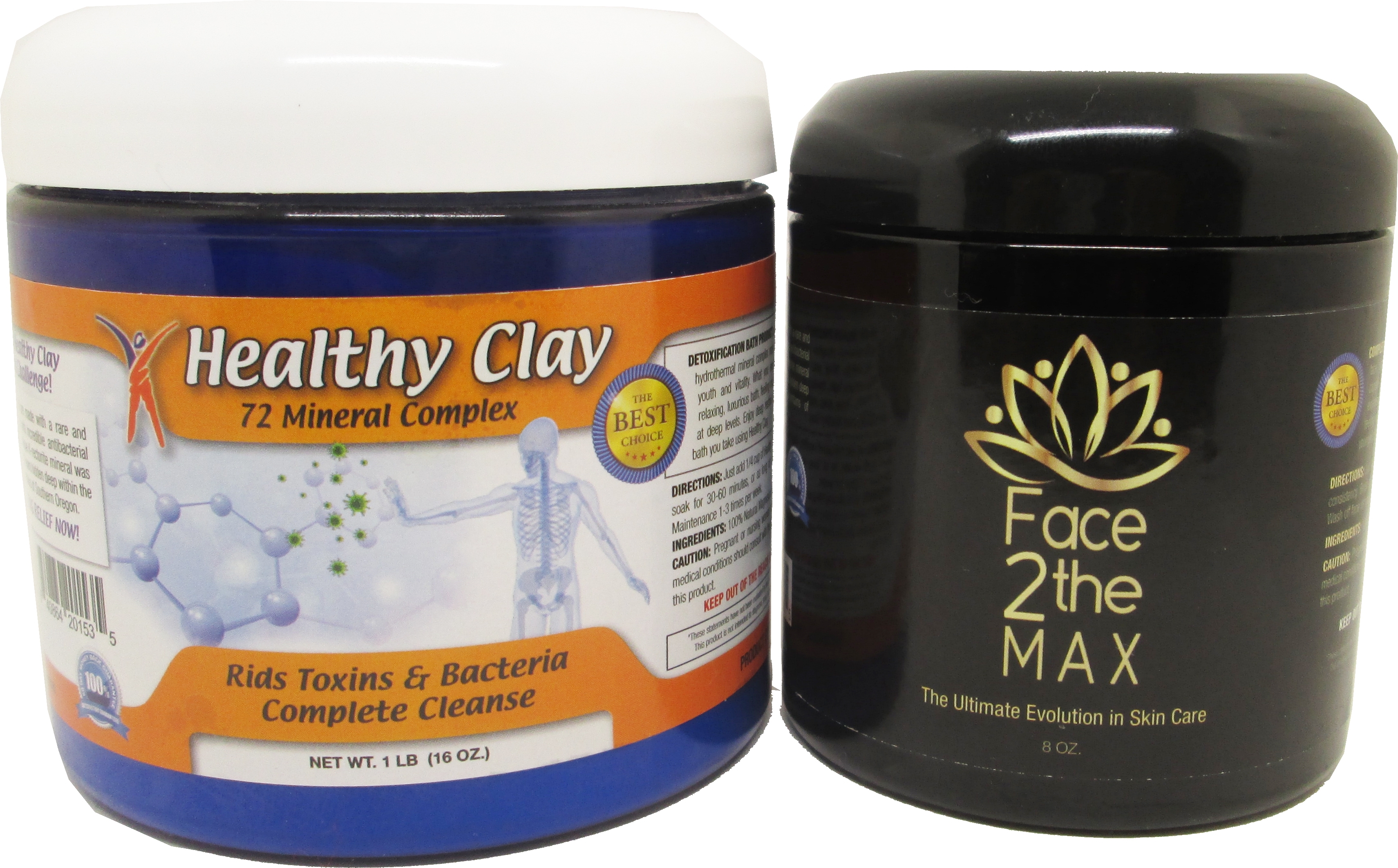Introducing Face2theMax/1lb Bath Healthy Clay, a detoxifying skincare solution. This set includes two jars of Oregon Blue Clay, offering a revitalizing experience both for your face and skin.