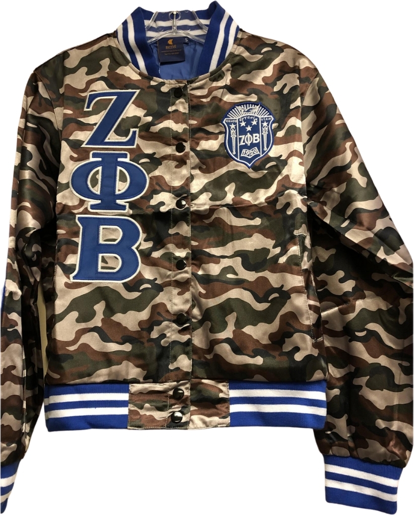 Buffalo Dallas Zeta Phi Beta Camo Satin Jacket