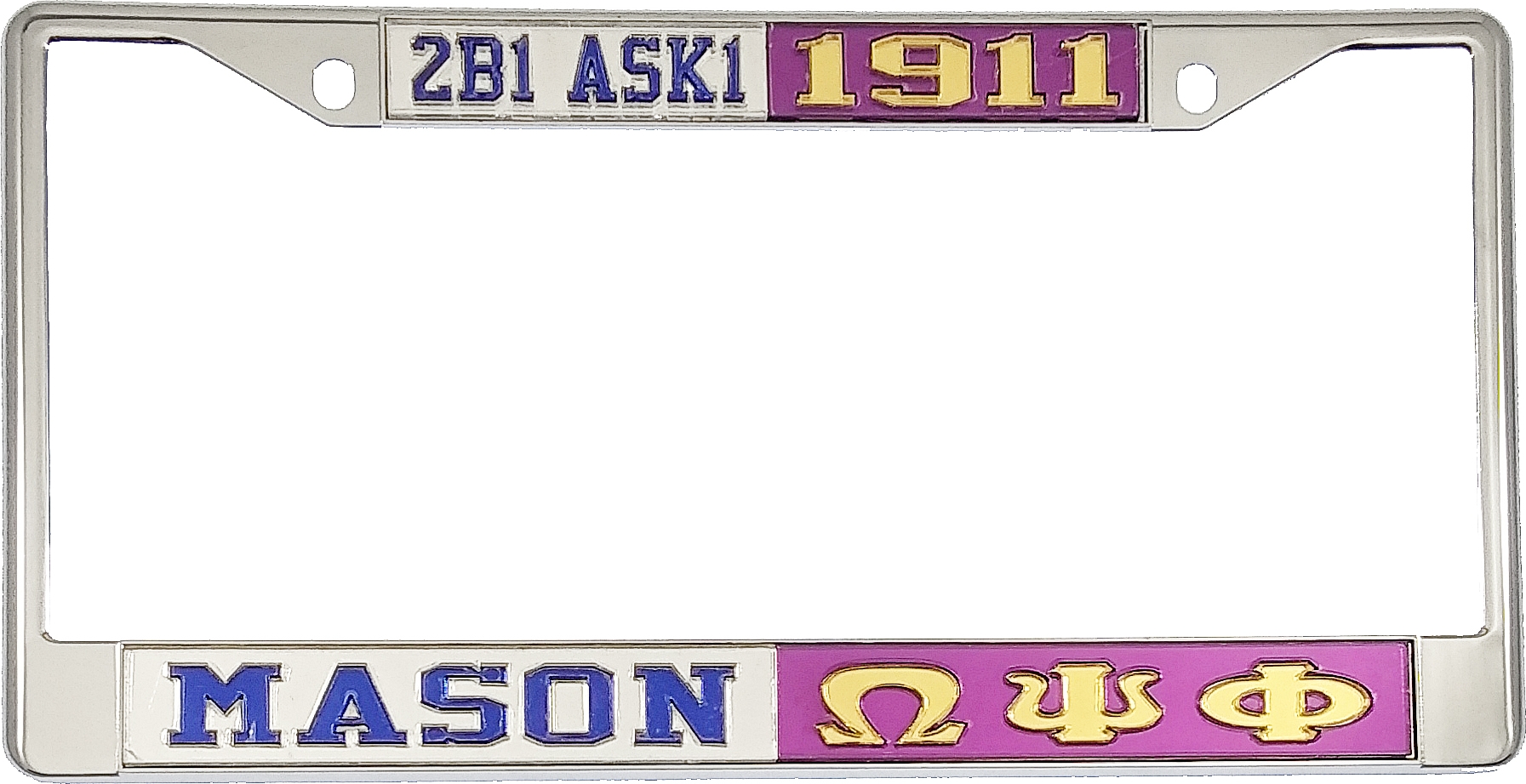 Mason - 2B1 ASK1 + Omega Psi Phi Split License Plate Frame