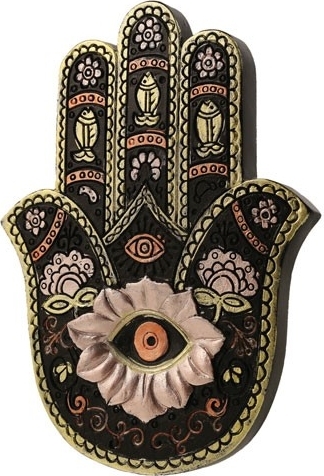 Polyresin burner with gold hamsa design. (3.75" x 5")